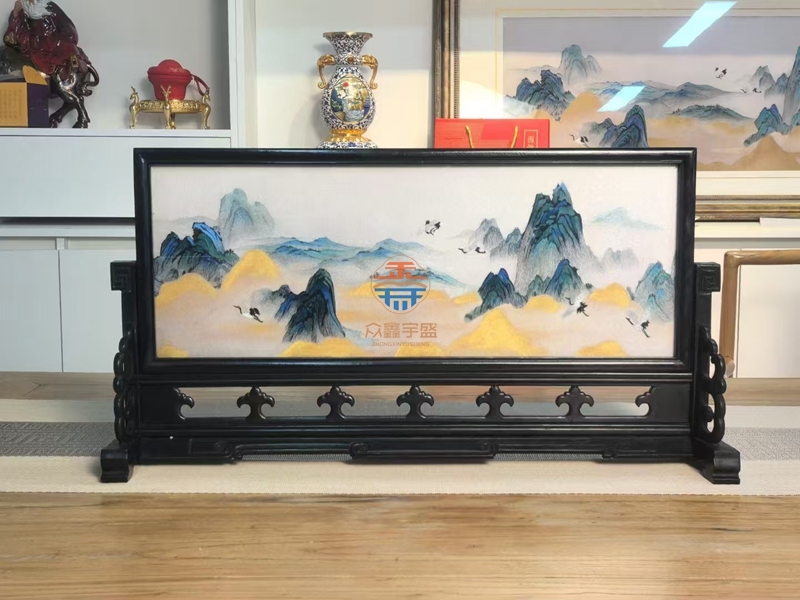 | 当代湘绣第一人成新湘《江山祥鹤图》湘绣作品 | |||
