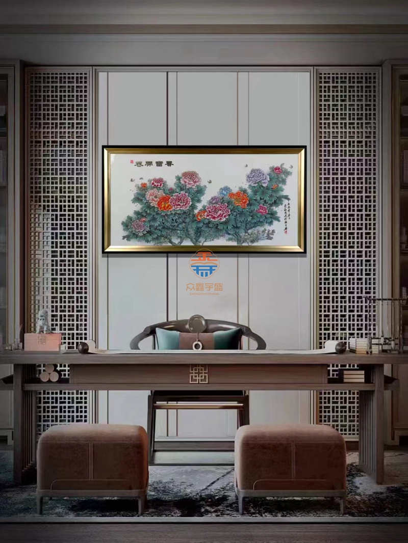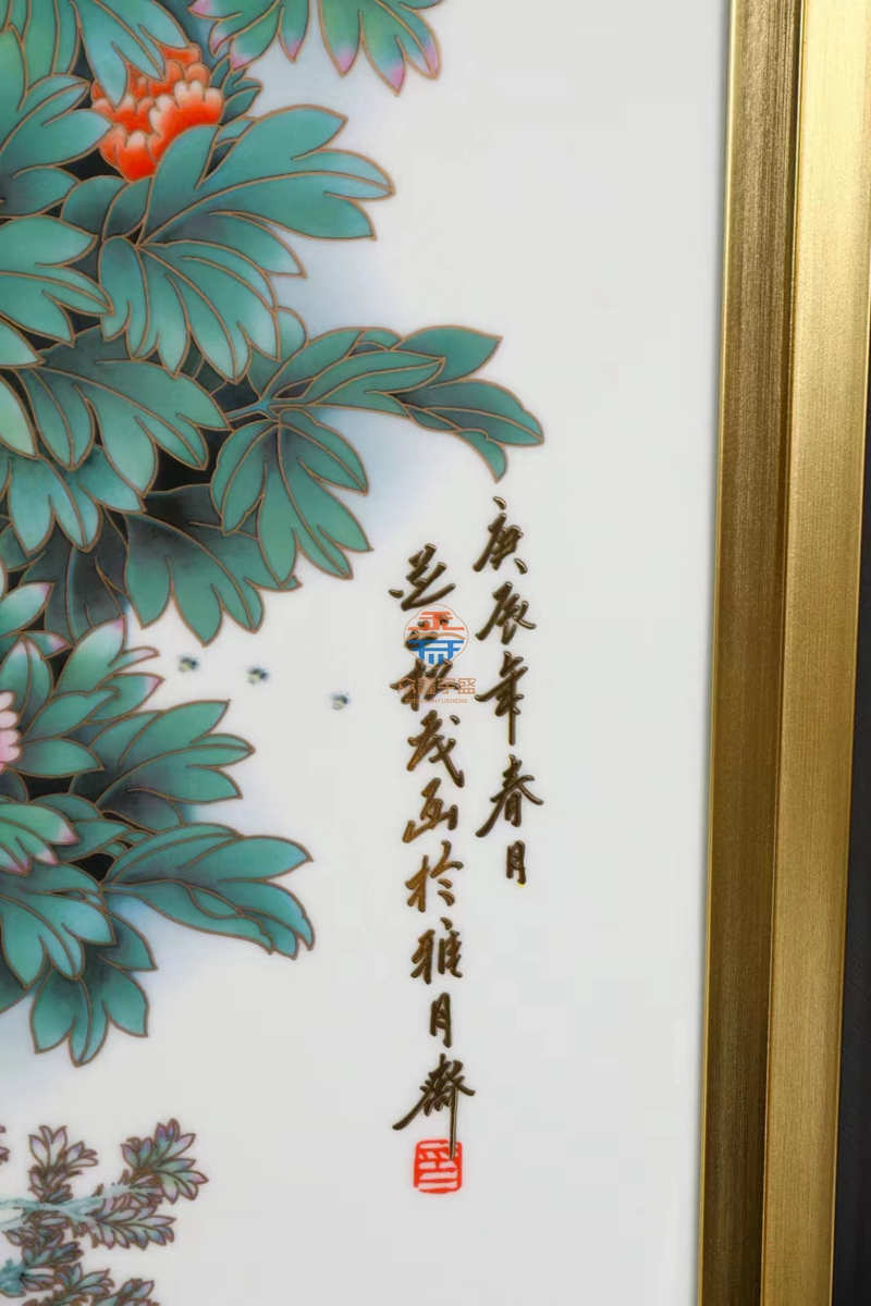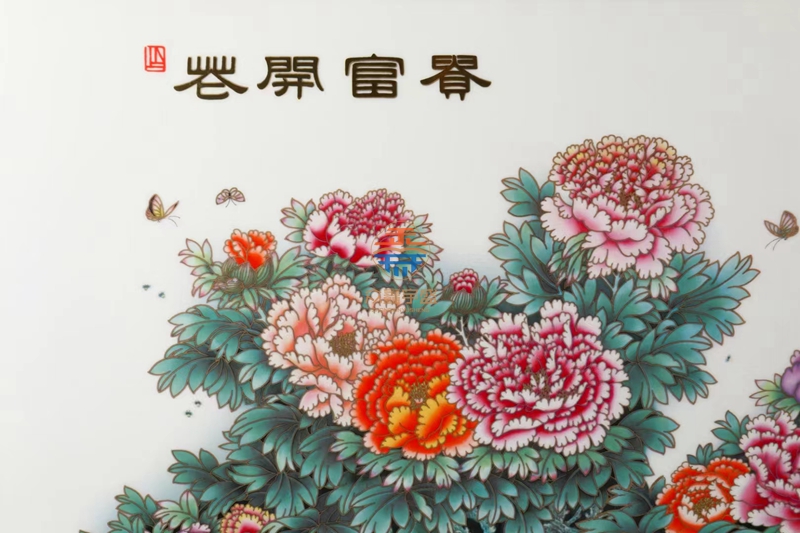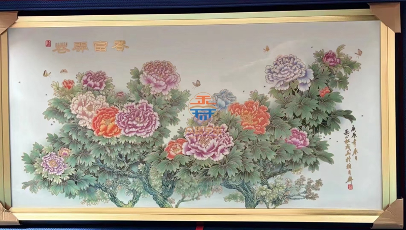 【作品名称】:花开富贵瓷板画 【作品规格】:136×78cm 【作品创作】:张松茂(中国工艺美术大师)