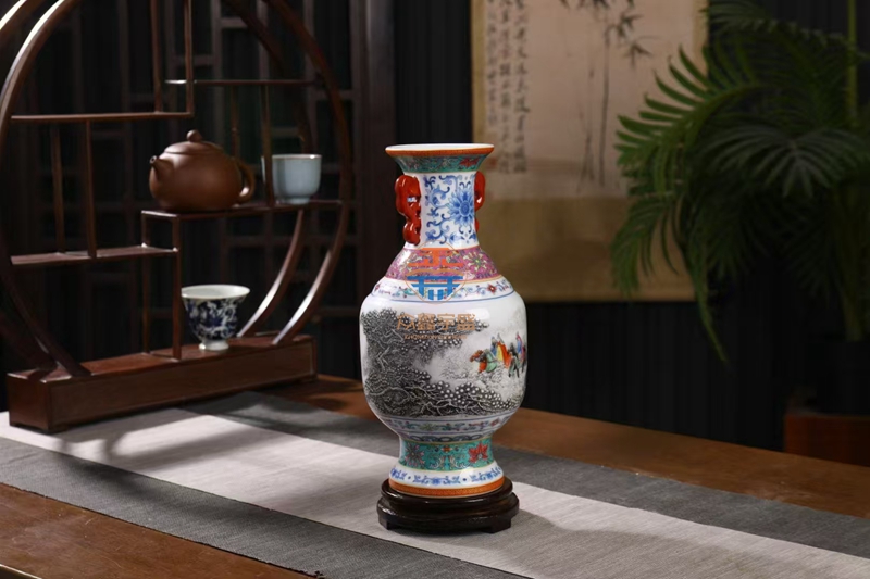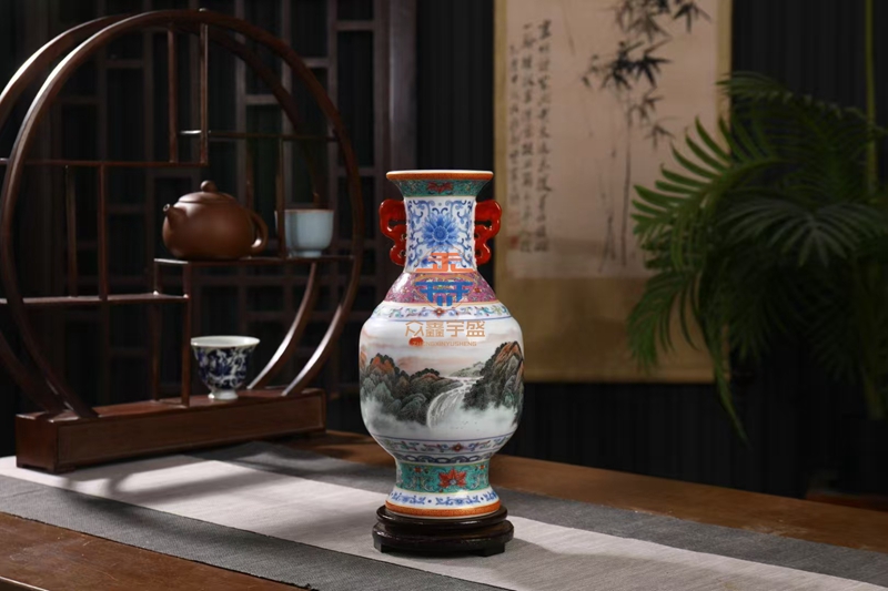 国瓷泰斗张松茂创作,以中华瓷王为原型,采用青花,粉彩,珐琅彩,扒花,描金,瓷雕6大绝技,一生创作之大成