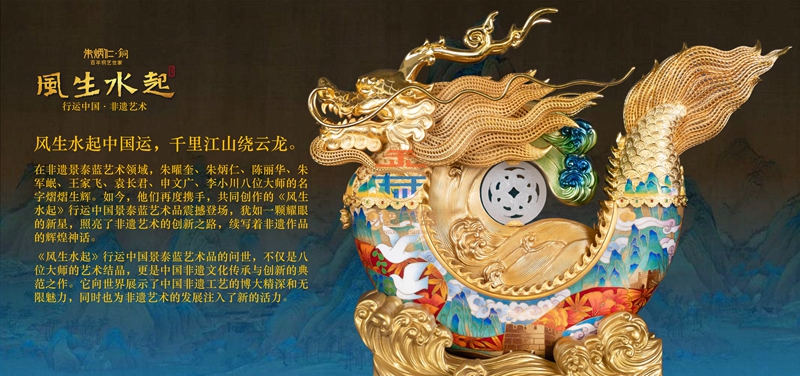 在非遗景泰蓝艺术领域,朱曜奎、朱炳仁、陈丽华、朱军岷、王家飞、袁长君、申文广、李小川八位大师的名字熠熠生辉。如今,他们再度携手,共同创作的《风生水起》行运中国景泰蓝艺术品震撼登场,犹如一颗耀眼的新星,照亮了非遗艺术的创新之路,续写着非遗作品的辉煌神话。