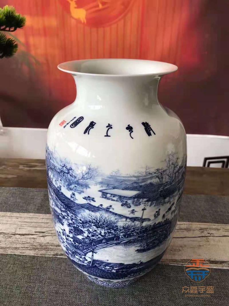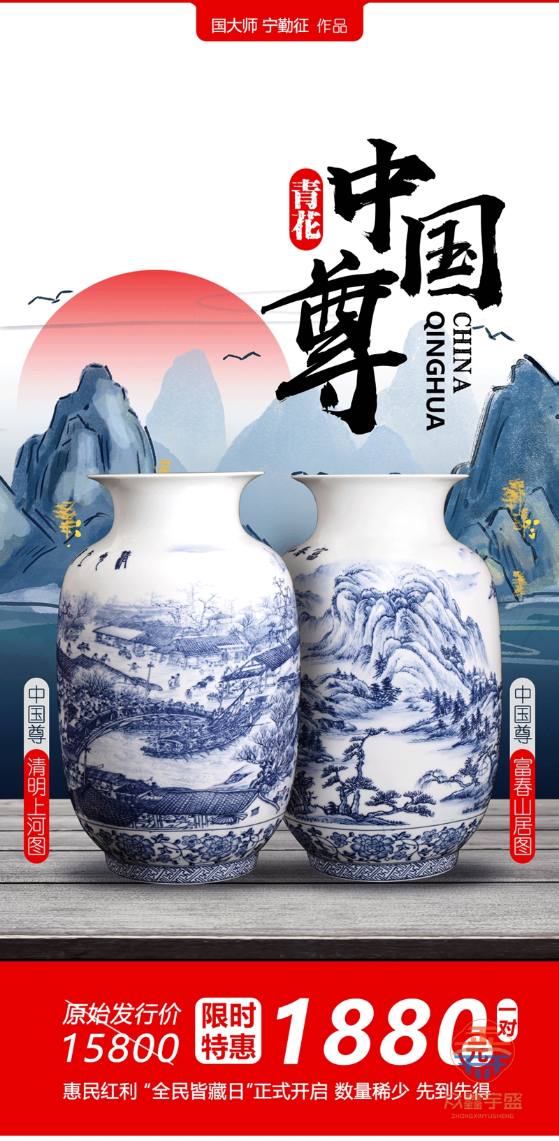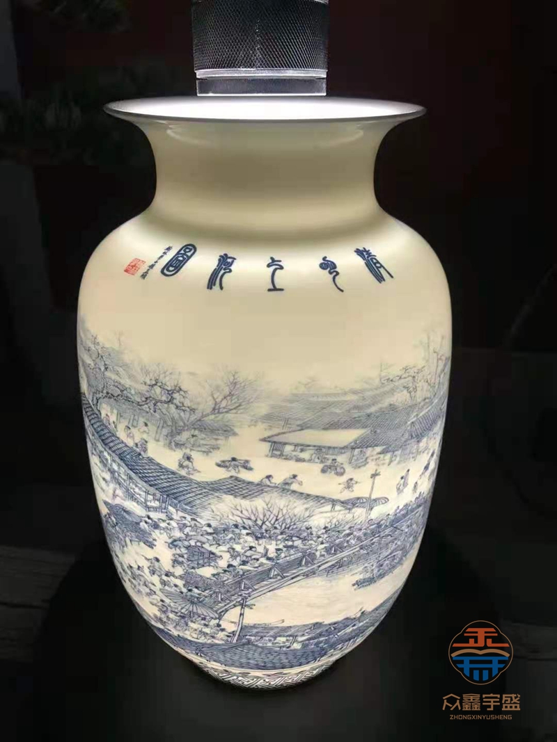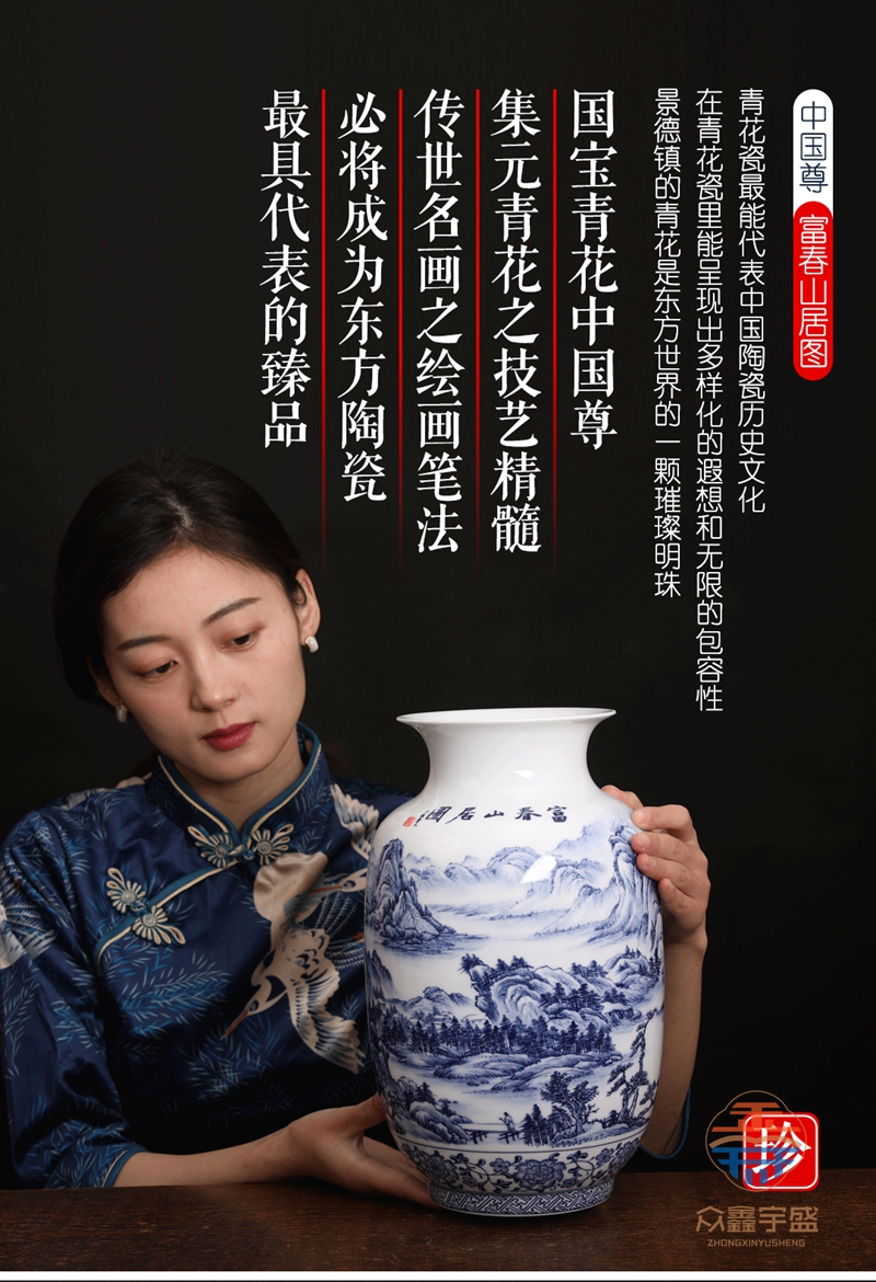 【藏品名称】:国宝青花中国尊 【藏品规格】:高:约31.5cm 口径:约14cm 足径:约12cm 腹径:约19cm